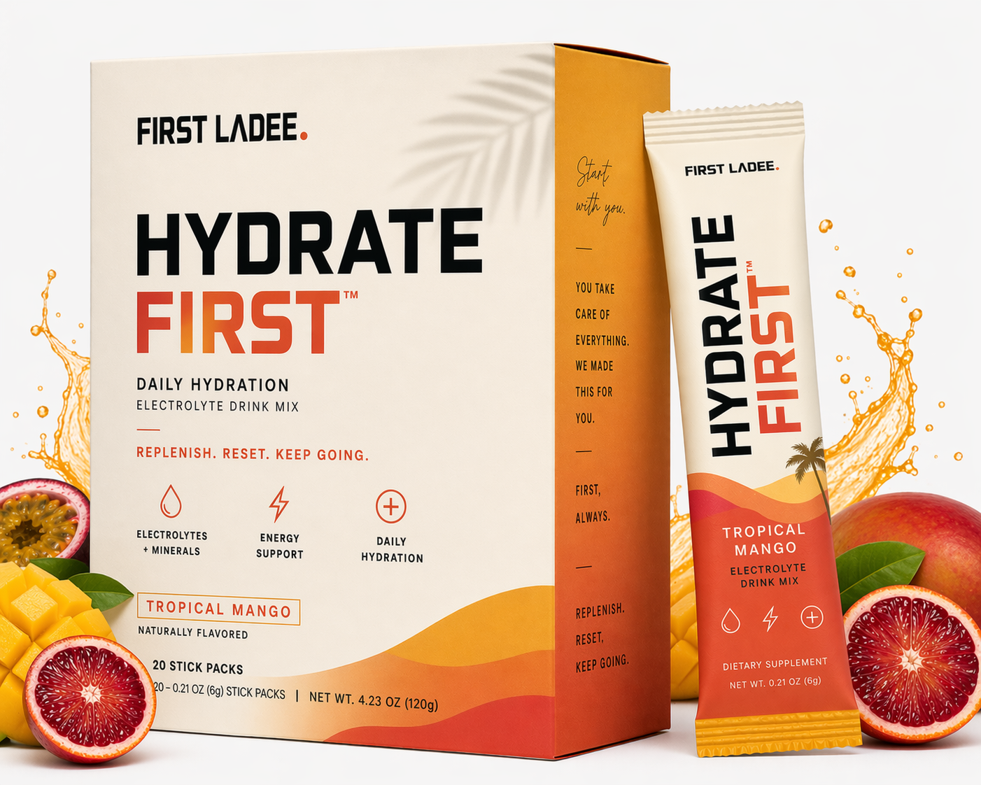 So I built it. HYDRATE FIRST is the ritual I never had — the one that feels like a small luxury and actually delivers. Honest doses. Real flavor. No fillers, no fairy dust, no ingredient list you need a chemistry degree to read.